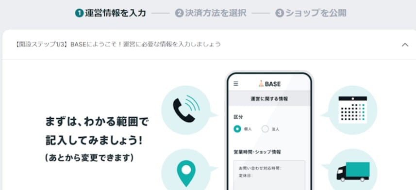 BASEでは、「30秒でショップを開ける」ことをウリにしています。