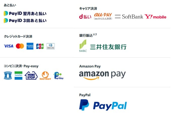 Amazon Payやコンビニ決済など、幅広い支払い方法に対応。