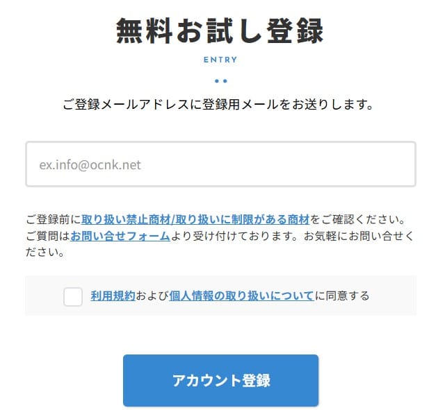 【利用規約および個人情報の取り扱いについてに同意する】にチェックを入れて【アカウント登録ボタン】を押して完了です。