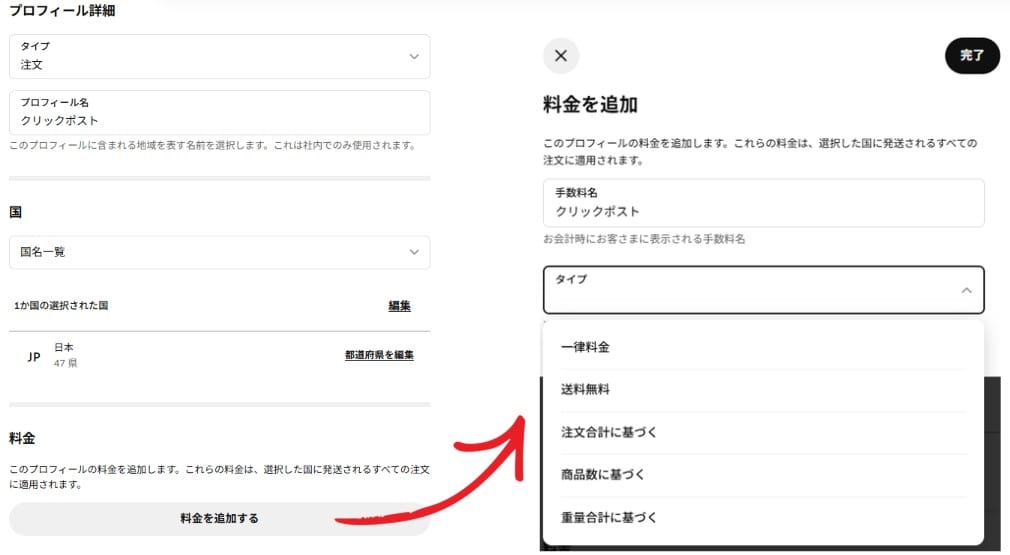 送料プロフィールを設定する